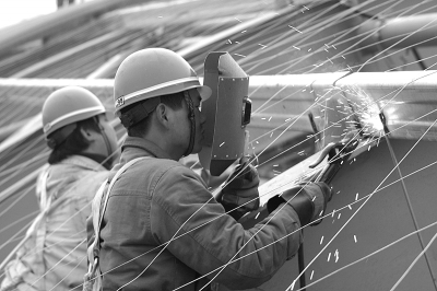十七局集团建筑公司承建的天津武清站站台雨棚工程是奥运会重点配套工程,施工中,项目部开展“弘扬奥运精神、奉献精品工程”主题劳动竞赛,争创精品工程。在铁道部组织的质量信誉评价中连获第一。目前该工程进入收尾阶段。图为职工精心焊好每个结点。 赵桂军 摄