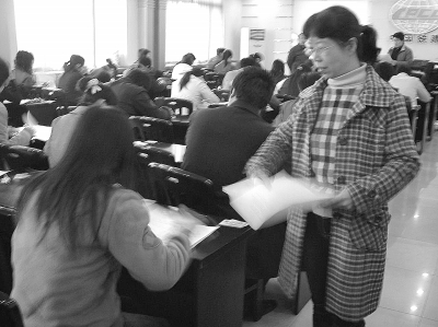 人们常说“学好数理化不如有个好爸爸”。可在十二局集团三公司却行不通了。近日,单位因施工生产需要,招收一些职工子弟充实生产一线,他们不论资排辈、不论其老子官大官小,一律凭考试成绩录用。这种公开、公正的用工办法倍受职工们的称赞。图为考试现场一角。