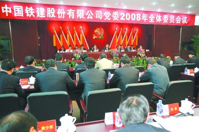 右图为中国铁建党委2008年全委会会场。 本报记者 刘建国 摄