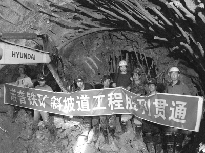 1、斜坡道地表与-100米水平胜利贯通