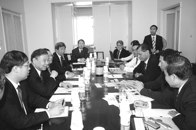 6月2日下午,中国铁建董事长李国瑞、副总裁庄尚标、董事会秘书李廷柱和铜陵有色金属集团董事长韦江宏,前往厄瓜多尔驻中国大使馆拜会了厄瓜多尔战略协调部部长格拉斯、财政部部长霍尔海。在友好坦诚的气氛中,双方就厄瓜多尔铜矿开发建设有关问题进行了富有成效的会谈。 刘 文 摄