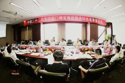 图为6月12日,在北京市住房和城乡建设委员会组织的厦门翔安海底隧道科技成果论证会上,由3位院士和4位国内地下工程权威专家组成的委员会,一致通过二十二局集团完成的两项科技成果鉴定,认定达到“国际领先”水平。