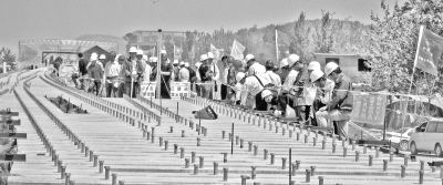 由十六局集团五公司担负施工的京沪高铁三标段二分部、五分部,严格按照铁道部推行的“四个标准化”,牢固树立“精品、信誉、安全、学习、创新、保障”意识,以“建设优质京沪,建设和谐京沪”为目标, 全体参建员工发扬了无私奉献、顽强拼搏、勇于创新、敢于超越的京沪高铁建设精神,不断掀起施工大干高潮。他们先后建成全线第一个高标准化混凝土拌和站;成功生产全线第一片900吨混凝土箱梁;第一家进行Ⅱ型轨道板铺设;京沪高铁首组道岔铺设完工,并在全线组织的各类劳动竞赛活动中名列前茅。二分部项目经理郭永忠获得中国铁建“工人先锋号标兵”称号,五分部项目经理刘瑞军被中国铁建评为京沪高铁劳动竞赛优秀组织者。目前,三标段重点工程全面突破,全线基础工程进入收尾阶段,为达到7月中下旬开始枣蚌先导段长轨铺设、8月中下旬全线开始铺轨的目标,迅速掀起百日大干建功立业劳动竞赛高潮,向Ⅱ型轨道板、道岔铺设发起冲击。