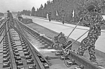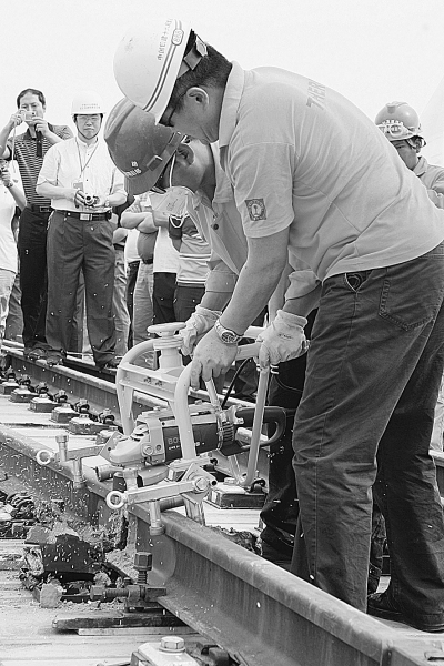 ▲轨端焊接打磨