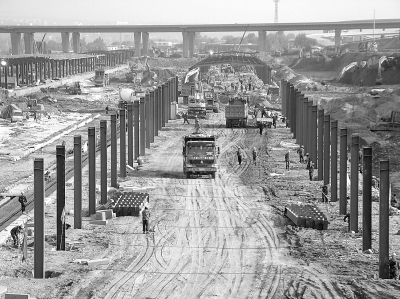 深一脚、浅一脚,走进每一个作业点,到处都是大干场面,机械轰鸣,人声鼎沸。站台工程、涵洞工程、路面工程、钢结构工程、轨道工程交叉作业齐头并进,紧张有序向前推进。展现在我们面前的仿佛就是一幅大兵团联合作战、多工种立体作业的恢宏画卷。