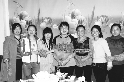 图为项目部为付君(中)过生日,“七仙女”们开心地合影留念。