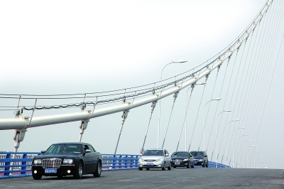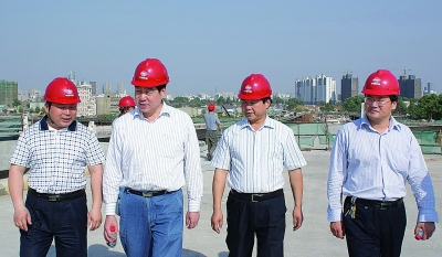 3、十五局集团公司党委书记、副董事长张汉云(左二)在南京公司经理贾贯乾、党委书记乌汝领的陪同下在南京长江江心洲大桥现场检查指导工作