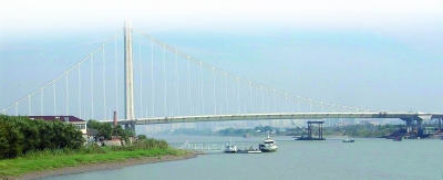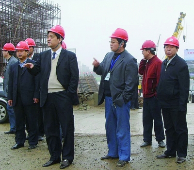 2、十五局集团公司董事长、总经理许东坤(右四)在南京长江江心洲大桥施工现场检查指导工作