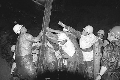 险情就是命令。针对险情他们迅即成立抢险领导小组,做好战前动员及一切准备工作,紧急投入抢险。第一批近200人的抢险队伍于当日下午出发,在3个小时内全部到达离驻地200公里外的抢险现场。按照现场指挥部统一部署,前期他们主要负责便道打通和物资装运。6月16日18时20分,在兄弟单位前期抢险工作进展不顺的情况下,刘部长果断决策,要求重新成立路基加固抢险指挥部,并把现场指挥权赋予十二局集团,明确全部参战的部队和所有施工单位由十二局集团董事长史道泉统一指挥。史道泉临危受命,不辱重托,立即担负起指挥重任。根据加固方案的需要,史道泉对现场数十个单位,近2000名人员和上百台设备,统筹安排,合理调度,很快使抢险工作形成有序状态。为保证抢险任务推进速度,他们始终勇挑重担,冲在抢险最前面,全权负责最困难最危险的基底加固工作。在现场暴雨不断,上部土石不断滚落的情况下,集团公司副总经理和万春、龙厦指挥部指挥长杨景杉、一公司项目部经理黄体刚、建安公司项目部经理王国强,带领80余名工人组成突击队,头顶瓢泼大雨,脚踩没膝淤泥,硬是在5个小时内靠人抬肩扛,把近200根钢轨、圆木打入塌陷基底,形成15米宽,20米长,上下5排的混合桩基础,从而稳稳地锁住了塌体,提前半小时实现了刘部长亲自下达的12点前完成打桩、控制坍塌、排除险情的首战目标。于此同时,施工便道也基本加固完成。6月17日凌晨,刘部长再次亲临现场,在对前段抢险给予充分肯定,并对后续工作作出明确指示后,放心地离开了现场。6月17日,他们继续战斗在最困难的第一线,全面负责路基反压护道的填筑。为此,他们夜以继日,连续作战,再次把100多人的抢险队伍分成两组,轮流作业。由于抢险作业时间长,加上暴雨不断,所有作业人员都极度疲惫,但仍然都能保持高昂的斗志,困了在现场枕木上打个盹,饿了啃点面包简单充饥。整个现场哪里最困难,哪里最危险,哪里最关键,哪里就是十二局集团的队伍。经过近12小时的连续奋战,他们终于在当晚18点前完成了一条1000多方的片石反压围堰基础,彻底排除了险情,保证了线路开通。于此同时,集团二公司、四公司项目部先后在新泉、小石车站装运钢轨300根,枕木3000根及其他抢险物资共计40车皮。不仅保证了塌方现场抢险的需要,而且对整个南昌局范围内的抢险工作都作出了重要贡献。