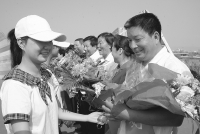 图为2009年度“中国好人榜”好人——十七局集团五公司职工赵海生与全国道德模范申纪兰等接受鲜花和掌声。 赵桂军 摄