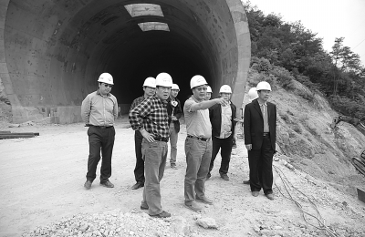 总经理王胜祖(中)带领执行力检查组在杭长项目查看施工现场。 |