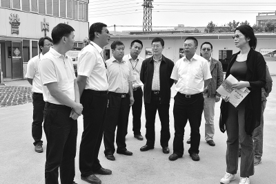项目经理姚四海(前左二)向交通运输部工程质量监督局领导汇报工作。
