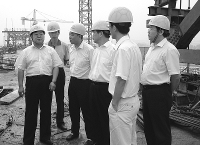 下图为十七局集团总经理卢朋(左三)在工地检查。