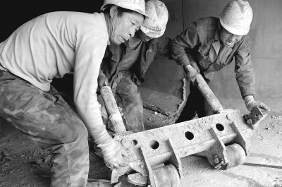 十八局集团一公司三淅项目在确保工程质量、进度的同时,狠抓施工现场的安全管理,加强安全防护设施的检查维护,堵塞漏洞,确保施工安全。图为工人施工时的情景。 王强强 摄