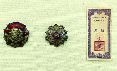 朝鲜二级独立自由勋章、三级国旗勋章、志愿军使用的饭票(捐赠者 张寿卿 高光文 王玉良 黄吉明) |