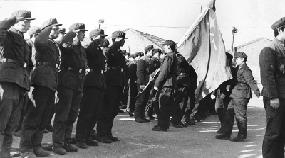 ⑤1984年1月1日,铁道兵集体转业,向“八一”军旗告别。