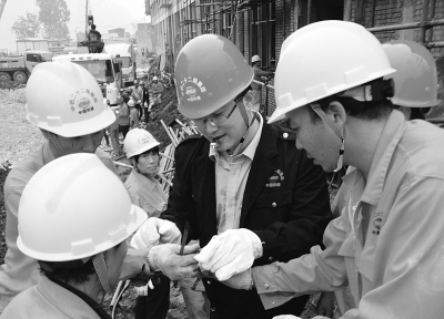 二十二局集团电气化公司贵州茅台酒改扩建工程项目部面对电力施工中存在的触电和登高危险,狠抓员工安全培训,制定了一套合理完善的安全预防管理体系。图为项目书记李春城向现场施工人员解释放电缆注意事项。 郭 红 摄