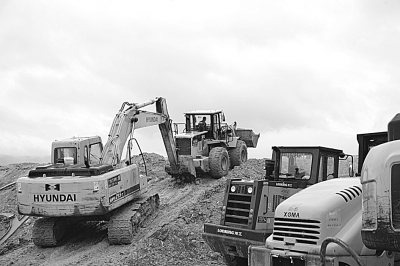 十七局集团四公司大(庆)广(州)高速3标项目克服南方阴雨天气给机械施工带来的困难,组成雨季机械运输突击队,冒雨完成业主下达的季度施工计划,在广州大广高速公路有限公司第一季度16家施工单位施工综合考评中,取得第三名的好成绩。图为机械作业施工现场。 张 鹏 张广田 摄
