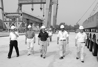 五公司执行董事、总经理冯希民(左三)到铺架公司检查工作。 |