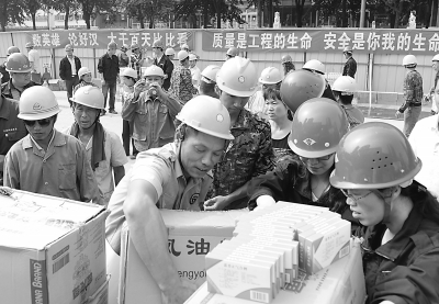 太原市长风街高架桥工程项目工期短,交通压力大,是市长亲自过问、市民倍加关注,集团领导亲自督战的家门口工程。为保安全、保质量、保工期、树信誉,参建职工夜以继日、争分夺秒地奋战在施工一线。启动仪式上,集团公司副总经理孙中林、工会副主席潘喜发率领慰问小组为该工地建设者发放了猪肉、大米、食用油、清凉茶、矿泉水、防暑药品、水杯等慰问品,派送了新鲜绿豆汤,感谢建设者的辛勤劳动。