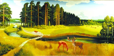 李育林 《春到兴安岭》 油画 220cm×400cm |
