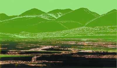 李仕兵 《藏北春早》 版画 40cm×60cm |