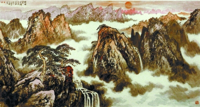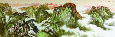 李建设 《五岳独尊》 国画 100cm×248cm |