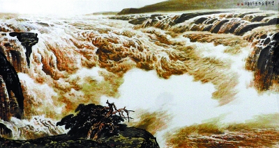 董吉祥 《中华风骨系列》(黄河涛声、黄山朝晖、长城耸翠、长江激浪) 国画 96cm×180cm×4