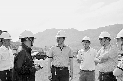 公司党委书记李继业(左三)在现场征求职工意见。 |
