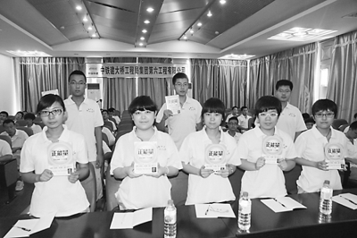 7月7日,大桥局集团六公司团委向近70名参加入职培训的大学毕业生每人送一本心理学著作——《正能量》,希望他们立志成才,为企业发展贡献力量。孙 磊 摄