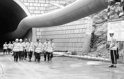 ◀随着隧道内自动监控系统发出的警报声,十五局集团四公司渝黔铁路项目老周岩隧道突发事故应急救援演练正式展开。图为演练人员将“被困员工”抬出洞外。 侯艳秋 摄