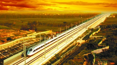 时速486.1公里!中国高铁最高时速在京沪高铁4标段先导段试验诞生。图为列车高速行驶在4标试验段上。刘国占 摄