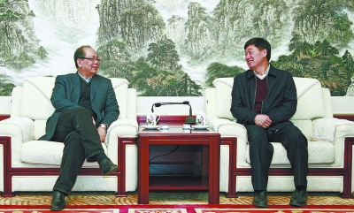 11月15日下午,中国铁建总裁张宗言在总部机关会见我国驻墨西哥大使邱小琪(左),就共同关心的话题进行了深入交流和研讨。