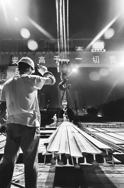 为高质量完成中国铁建集采工作,物资集团东北公司装卸工披星戴月,加班加点,确保物资及时供应,在平凡的岗位上默默奉献。图为他们在夜间进行装卸作业。李佳哲 摄