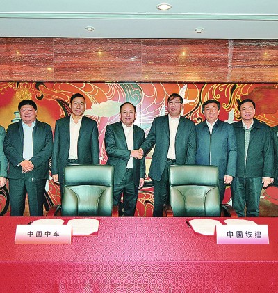 中国中车股份副总裁余卫平、中国铁建总经济师赵晋华及中国铁建总部机关相关负责人等出席签约仪式。