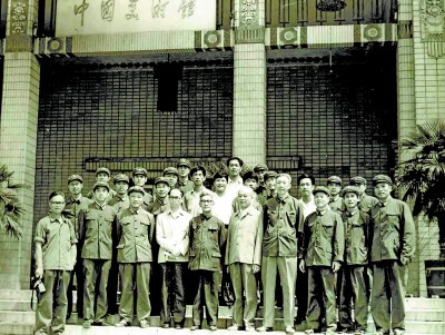 1982年,王琦先生(前排右四)代表中国美协主持召开第三届大路画展研讨会,并与中国版画元老们和铁道兵美术作者在中国美术馆前合影。 |
