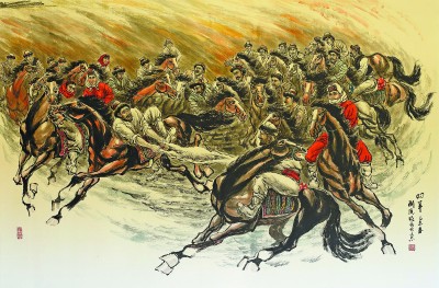 铺轨庆典 —— 叼羊 (国画) 刘院明