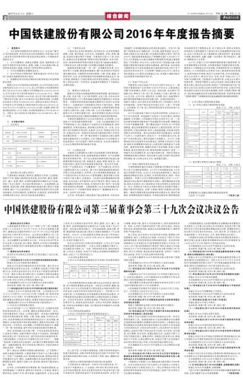 中国铁建股份有限公司2016年年度报告摘要