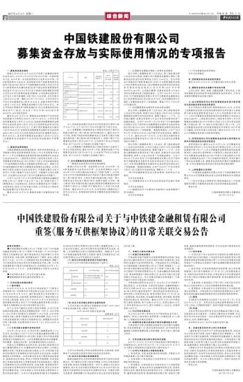 中国铁建股份有限公司募集资金存放与实际使用情况的专项报告
