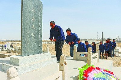 3月28日,为深切缅怀革命先烈,中铁十七局五公司格库项目部组织20余名职工代表前往格尔木市烈士陵园展开清明节扫墓祭英烈活动,缅怀为修建青藏铁路而光荣牺牲的铁道兵战士。 唐 跃 摄