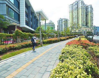 为迎接金砖国家领导人会晤,在厦门市政改造及景观提升工程建设中,中铁二十二局三公司坚持当好东道主,精益求精干好工程,目前其负责的6项工程进展顺利,受到市政府和群众好评。图为该公司刚刚完成改造施工的厦门文园路人行道。