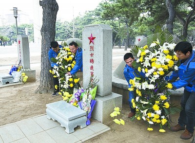 本报讯(通讯员黄品青)近日,中铁十一局京沈客专站房二标项目部员工来到沈阳抗美援朝烈士陵园,缅怀“登高英雄”杨连第。