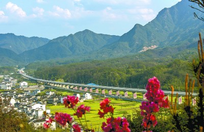 杭黄高铁全长286公里,全线桥隧比高达86.3%,计划2018年下半年通车,建成后将把10多个国家级森林公园和5A级风景名胜区紧密连接起来,形成一条“世界级的黄金旅游线”。