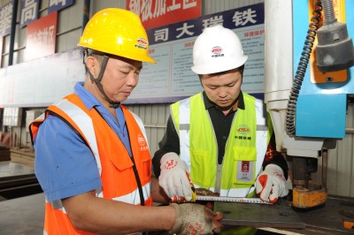 在中缅边境地区施工的中铁十七局大瑞项目部,自进场以来通过工前安全教育、三级安全培训、现场安全盯控等措施,实现了全方位安全管控,信用评价在全线名列第一。图为4月26日,安全员邓峰正在钢构厂内检查隧道钢拱架连接板加工操作规范。 前 行 摄