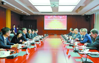 图为庄尚标会见卡特彼勒首席执行官安博骏一行。陈 聪 摄