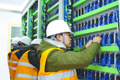 中国铁建电气化局济青高铁“四电”2标项目部职工春节期间坚持施工,按照济清公司提出的“通信、信号工程打造‘绣花工程’”的高标准要求,日前顺利通过了业主对济青高铁通信、信号首件工程评估验收。图为信号专业职工在淄博北站进行组合布线。齐晓景 摄