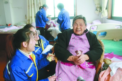 ▲3月2日,中铁十五局二公司杭黄铁路项目部学雷锋志愿者小分队来到安徽绩溪县社会福利院看望慰问老人,他们为148位爷爷、奶奶送上节日礼物,为老人修剪指甲、梳头、读报。图为志愿者陪福利院老人聊天。齐 珍 摄