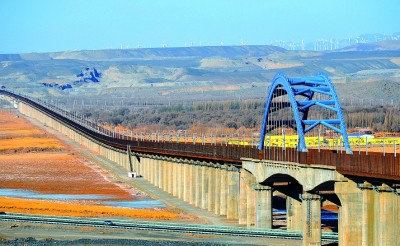 图为兰新高铁达坂城湿地特大桥。 刘建国 摄