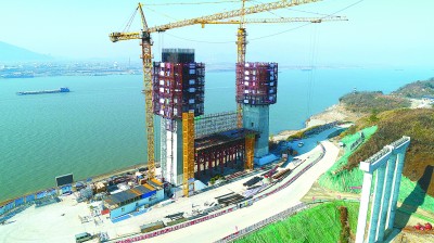 中国铁建大桥局一公司在湖北省S78蕲嘉高速公路棋盘洲长江大桥QPZ-1标工程施工中,坚持创新管理理念,利用技术创新和信息化手段进行质量管控,提高工效和品质,努力打造长江大桥样板工程。目前该桥主塔施工快速推进,已完成60米。图为施工中的大桥主塔。王成龙 摄
