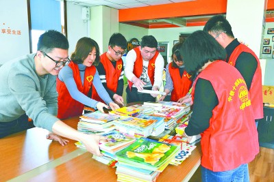 近日,中铁十四局建筑公司团委“青春建筑人”志愿服务队联合济南电台Music88.7栏目组,共同开展“点亮小橘灯,同读一本书”爱心读书行动,为农村孩子们赠送课外读物200余册。图为志愿者们在济南电台进行现场捐赠。
